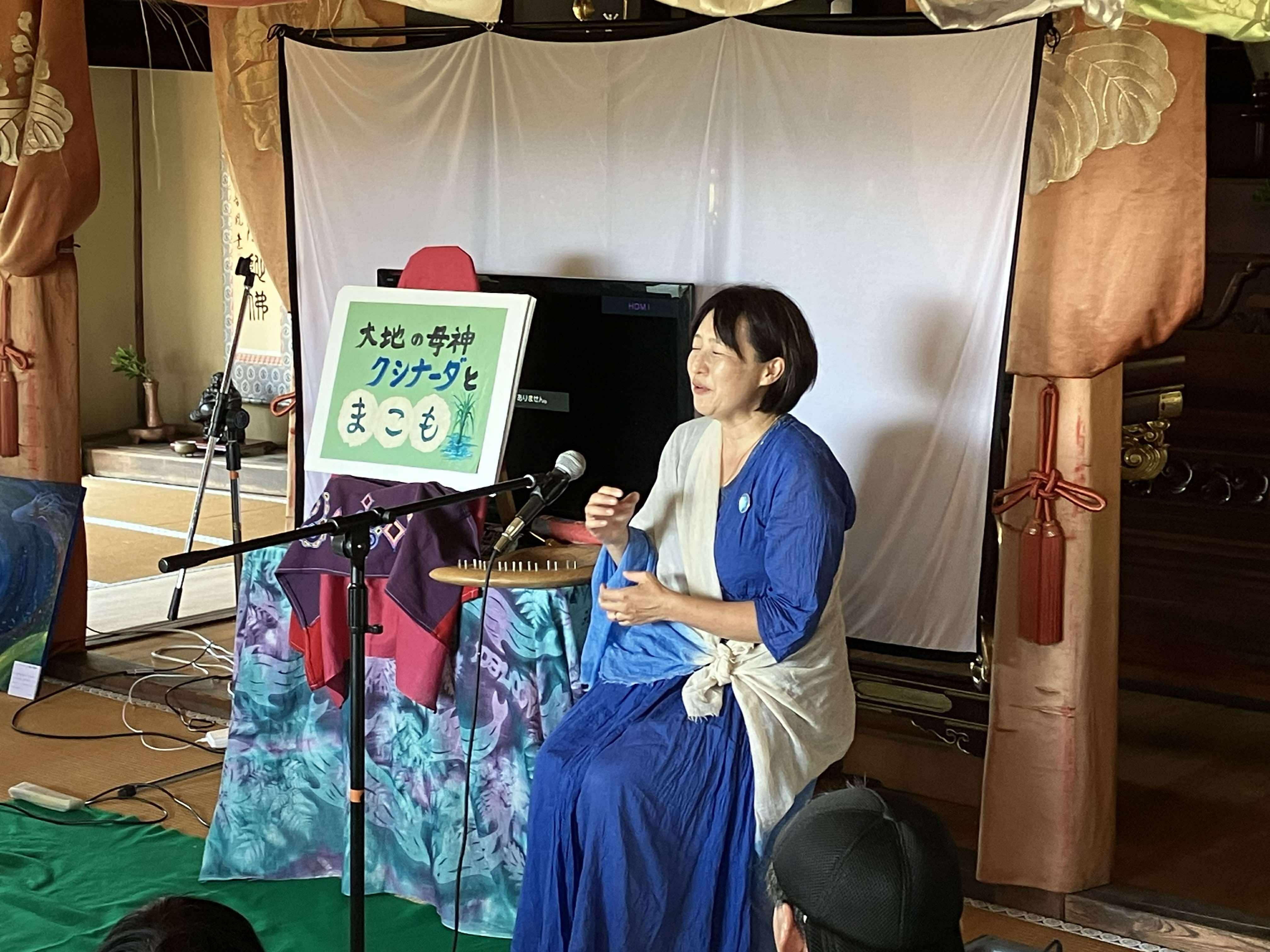 1972年大阪府生まれ。大阪府在住。いのち、いのり、ひかりを描く、旅するアーティスト。出雲天地創造神芝居語り部。小学校教員を20年し7年前に早期退職、自己流で絵を描き始める。3年前から全国個展の旅を始め、去年5月からは出雲の方に託された、神芝居の語りべをはじめ、一年で各地で53回公演。出雲口伝のお話会もこの春からはじめる。